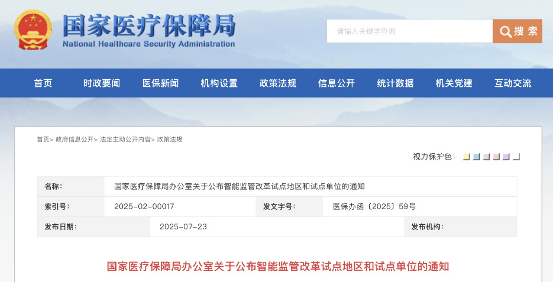 7月23日,国家医保局发布《关于公布智能监管改革试点地区和试点单位的通知》,确定试点地区92个(其中天津、河北、山东、海南、贵州、青海、宁夏为全域范围内试点)、试点定点医药机构359家(名单见文末)。