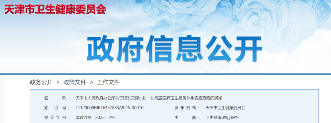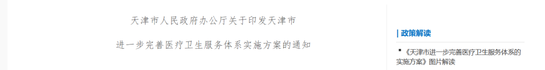 近日,天津市人民政府办公厅发布关于印发《天津市进一步完善医疗卫生服务体系的实施方案》的通知(以下简称《方案》),以加快建设优质高效的医疗卫生服务体系,提高全方位全周期健康服务与保障能力。