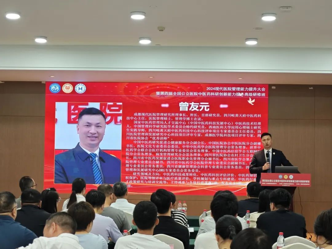 2024年6月21-22日,由四川医院管理和发展研究中心指导,四川岐黄天府中医药科技中心主办,成都现代医院管理研究所承办的“2024现代医院管理能力提升大会暨第四届全国公立医院中医药科研创新能力提升高级研修班”在成都成功举办。