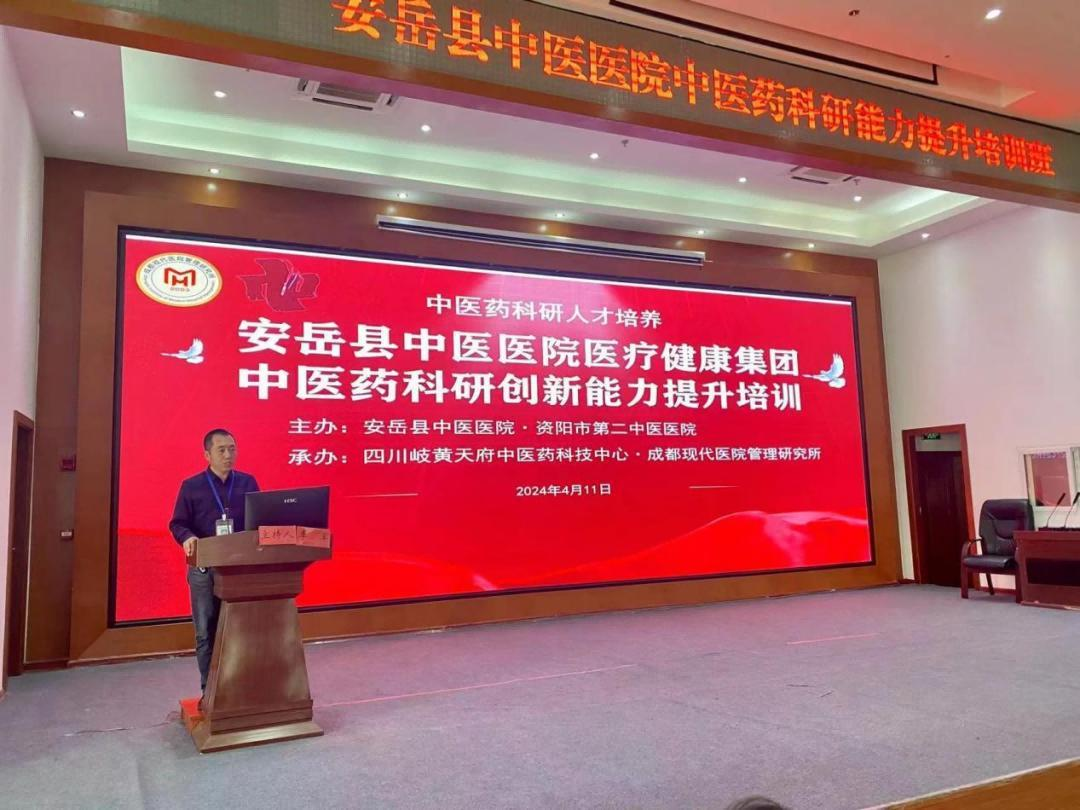 2024年4月11日,由安岳县中医医院·资阳市第二中医医院主办,四川岐黄天府中医药科技中心、成都现代医院管理研究所承办的安岳县中医医院医疗健康集团中医药科研创新能力提升培训在安岳县中医医院举行。会议由安岳县中医医院副院长李军主持。医院院领导、中层干部、集团分院干部、科研助理等相关人员等参加培训。