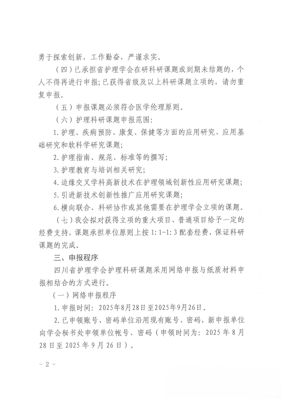 (四)申报方向:护理多方面研究、指南规范撰写等。