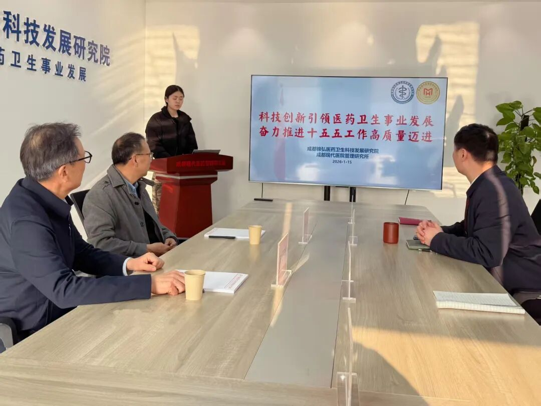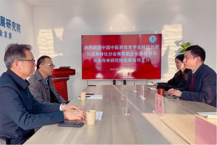 2026年1月15日,中国中医药信息学会科技创新与成果转化分会常务副会长兼秘书长张永存、北京中医药大学深圳(龙岗)医院专家顾问刘子明莅临成都锦弘医药卫生科技发展研究院视察并指导工作。成都锦弘医药卫生科技发展研究院理事长曾友元参加会议。
