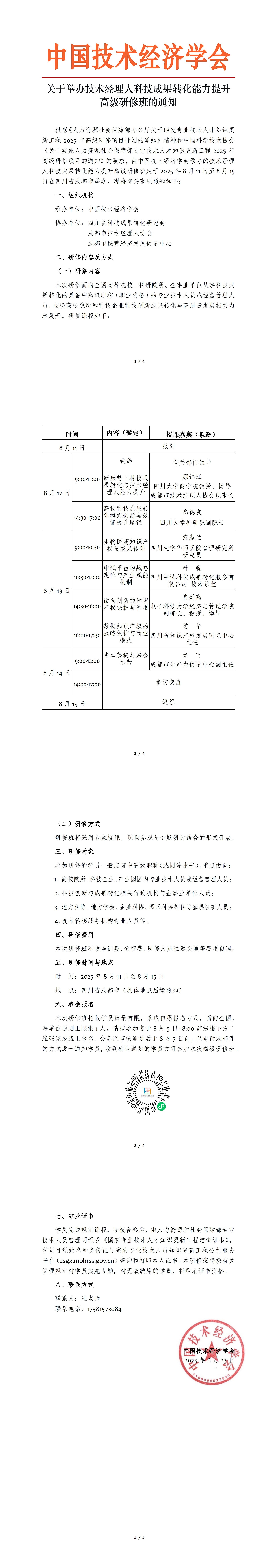 中国技术经济学会技术经理人科技成果转化能力提升高级研修班