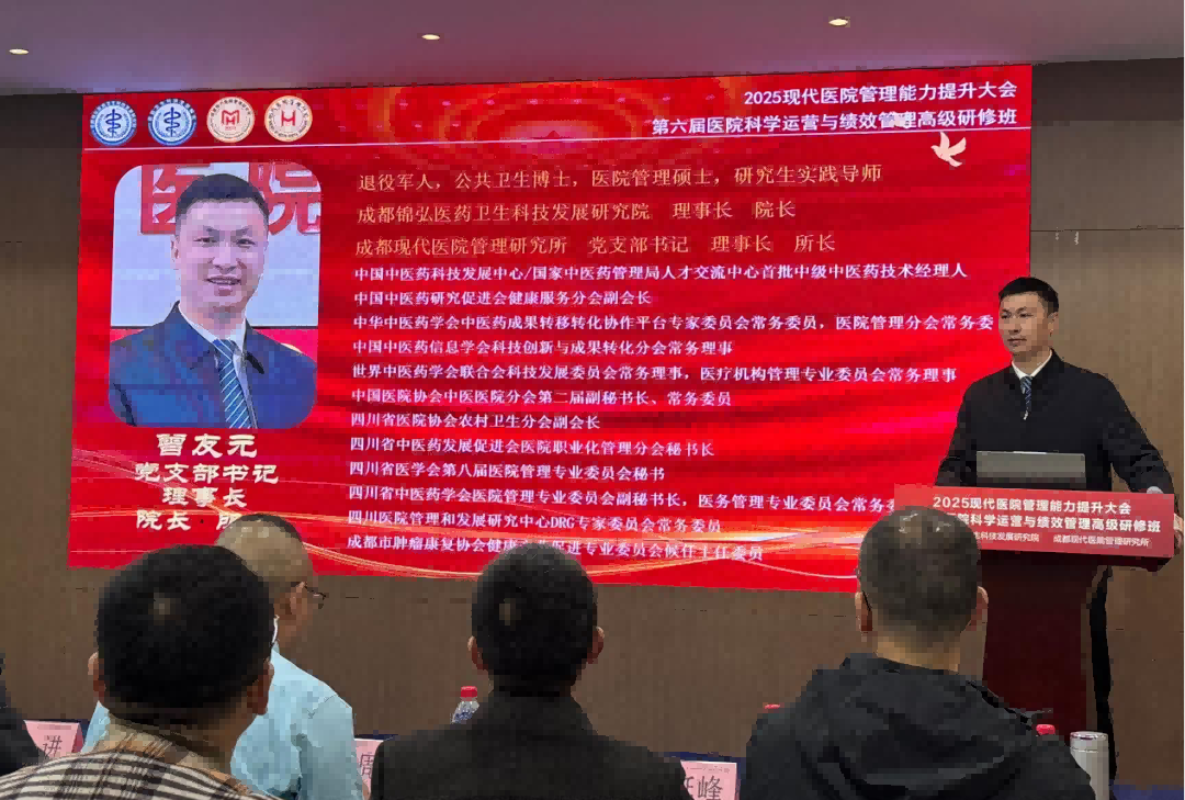 2025年11月21日-22日,由成都锦弘医药卫生科技发展研究院、成都现代医院管理研究所主办,四川岐黄天府中医药科技中心承办的“2025现代医院管理能力提升大会暨第六届医院科学运营与绩效管理高级研修班”在成都成功举办,会议由成都锦弘医药卫生科技发展研究院秘书长赵涵琪主持。
