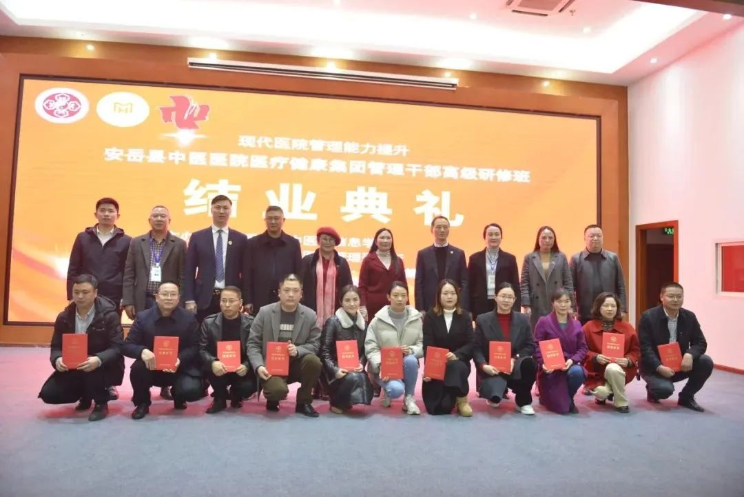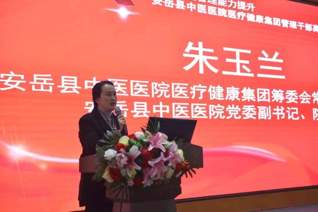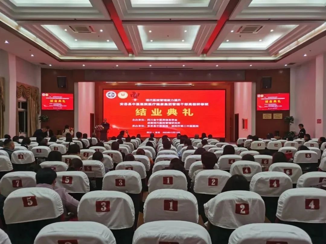 2023年12月13日,由四川省中医药信息学会、成都现代医院管理研究所主办,安岳县中医医院承办的“安岳县中医医院医疗健康集团管理干部高级研修班”圆满结业。结业典礼由安岳县中医医院医疗健康集团筹委会常务副主任、安岳县中医医院党委副书记、院长朱玉兰主持。
