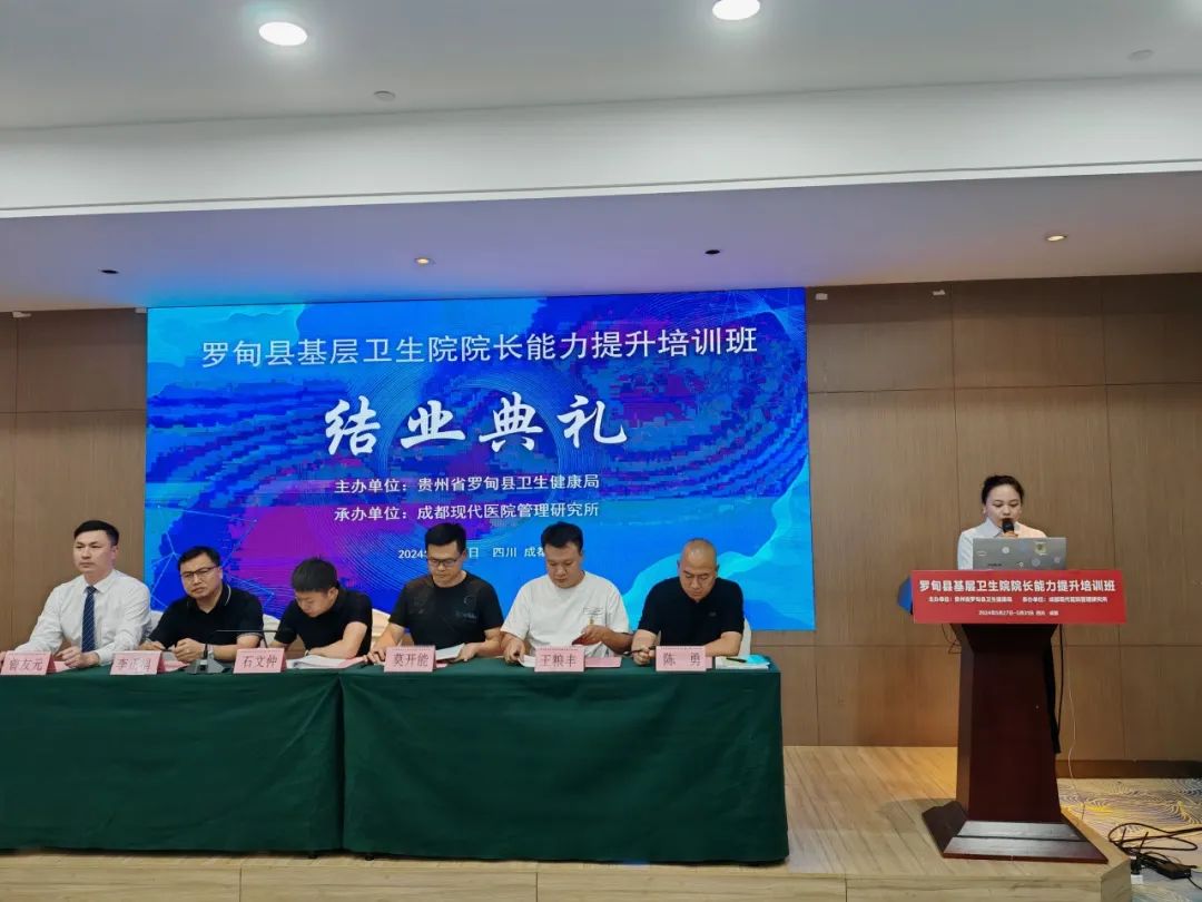 2024年5月31日,由罗甸县卫生健康局主办,成都现代医院管理研究所承办的“罗甸县基层卫生院院长能力提升培训班”圆满结业。罗甸县卫生健康局党委委员、计生协党组书记石文仲,罗甸县疾控中心主任莫开能,罗甸县人民医院医共体总院副院长李正福,罗甸县中医医院医共体总院党委委员王粮丰,罗甸县妇幼保健院副院长陈勇,中国中医药研究促进会县域医疗发展工作委员会副主任委员、成都现代医院管理研究所理事长、所长曾友元等领导出席结业典礼。