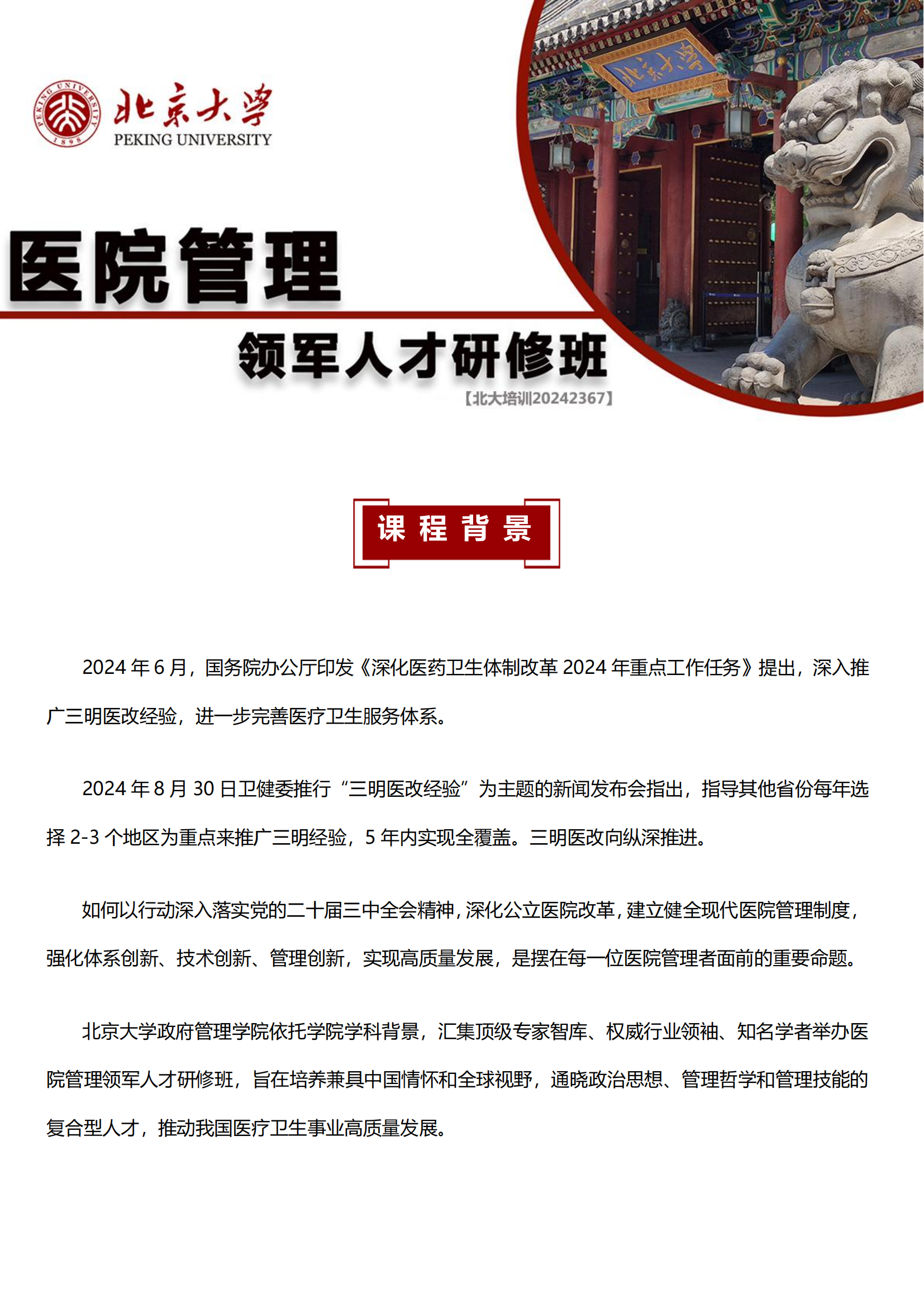 北京大学医院管理领军人才研修班2025