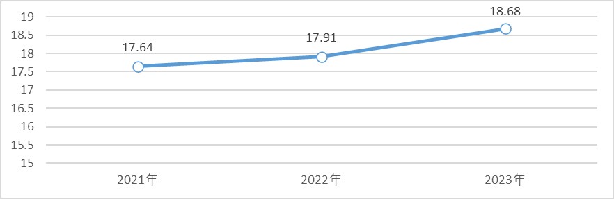 图5 2021-2023年三级公立中医医院住院中医特色指标情况