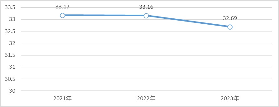 图12 2021-2023年三级公立中医医院副高级职称及以上的医务人员比例情况