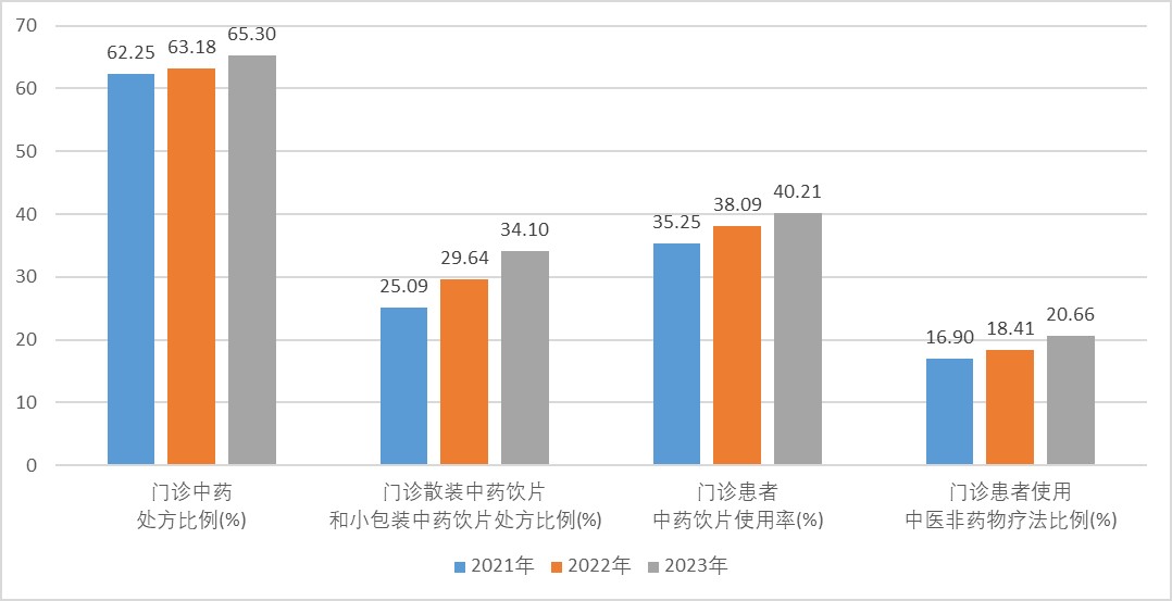 图4 2021-2023年三级公立中医医院门诊中医特色指标情况