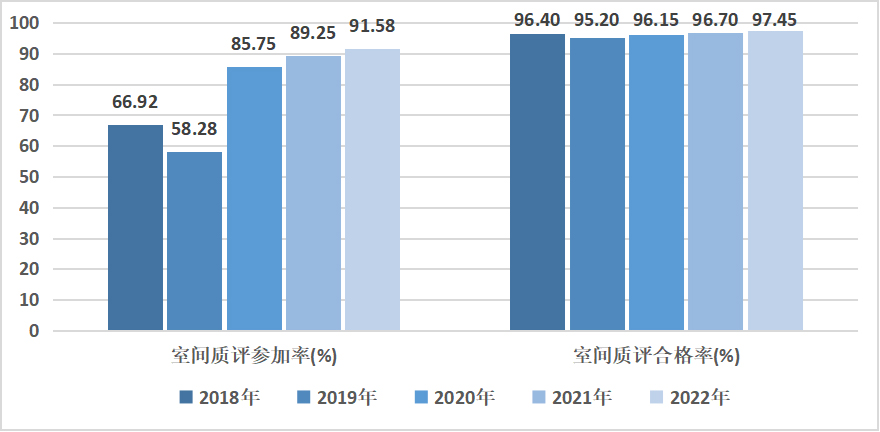 图6 2018-2022年三级公立中医医院室间质量评价项目参加率和合格率情况