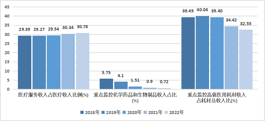 图8 2018-2022年三级公立中医医院收入结构情况