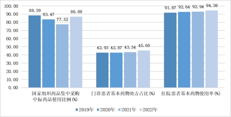 图5 2019-2022年三级公立中医医院合理用药情况