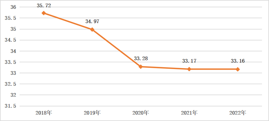 图4 2018-2022年三级公立中医医院抗菌药物使用情况