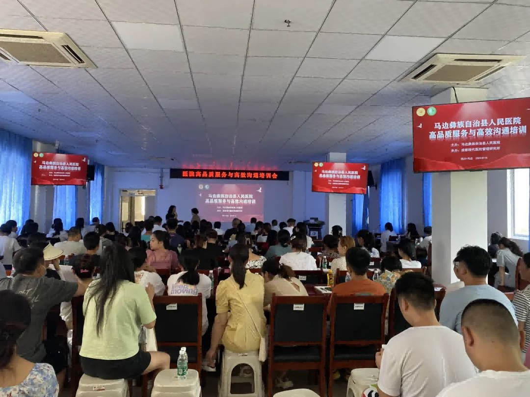 2023年8月16日,由马边彝族自治县人民医院主办,成都现代医院管理研究所承办的“马边彝族自治县人民医院高品质服务与高效沟通培训班”在医院门诊部五楼会议室顺利举办。马边彝族自治县人民医院党委书记李蕾等院领导,中层干部及各科室人员140余人参加培训。